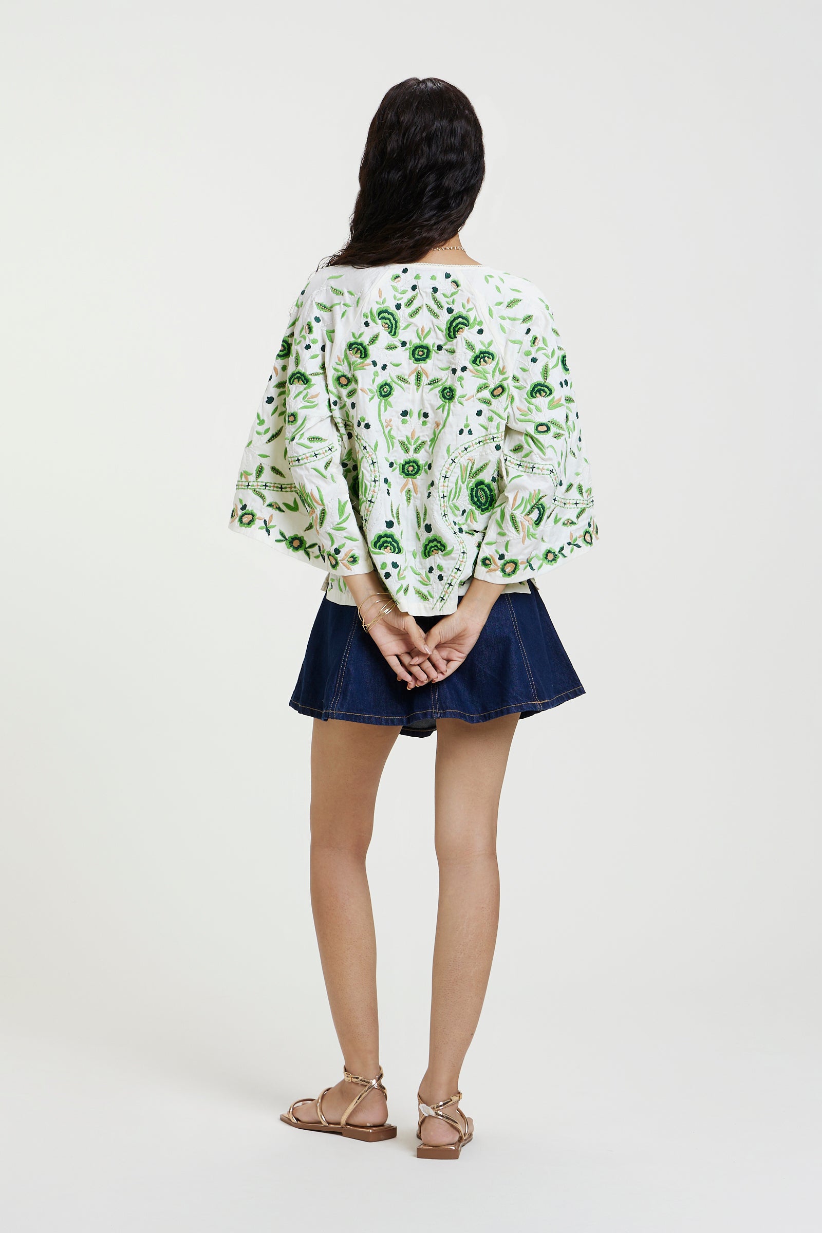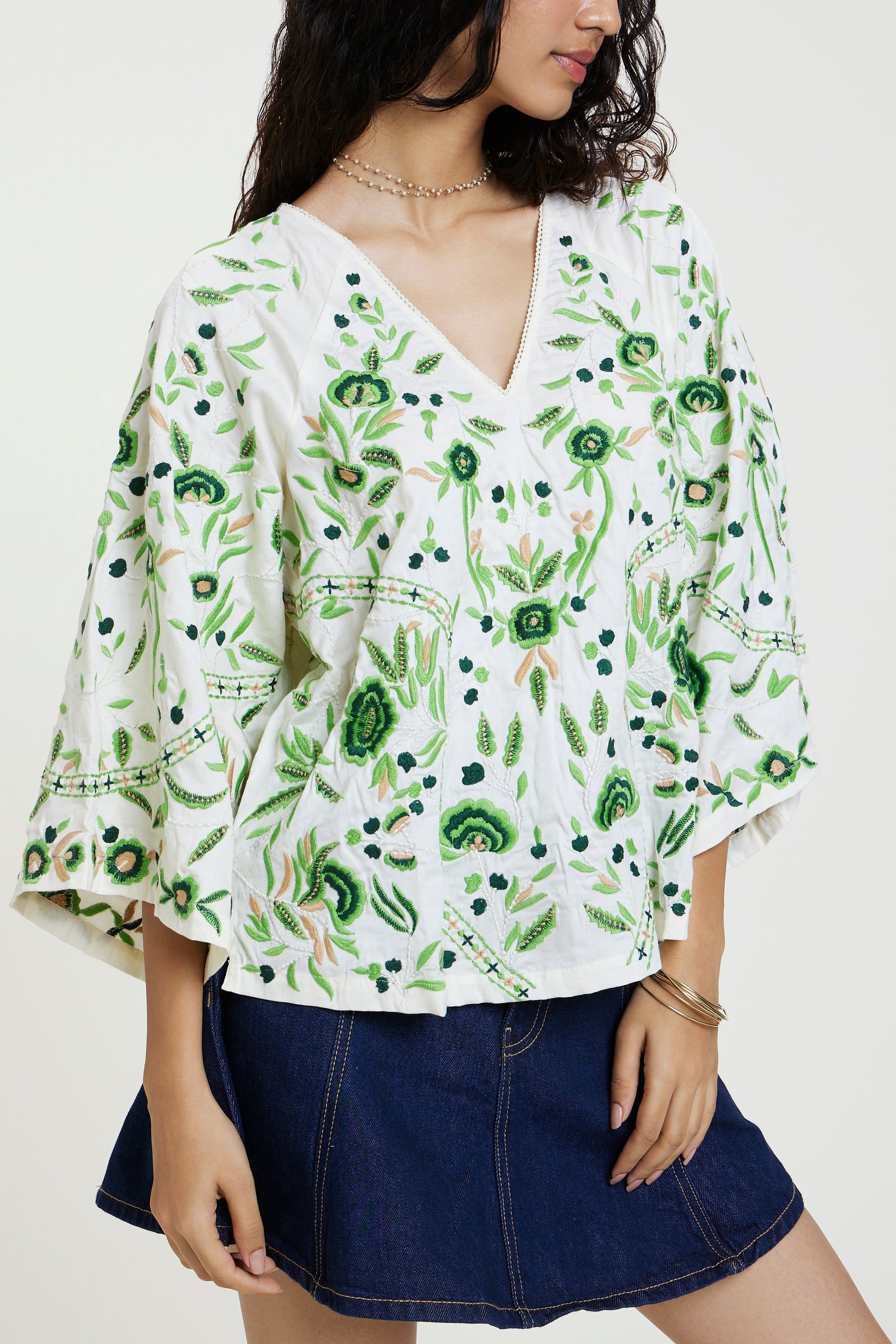 Made from cotton satin, this loose-fit silhouette features raglan sleeves, lace detailing at the neckline and all-over placement embroidery in an easy slip-on style.